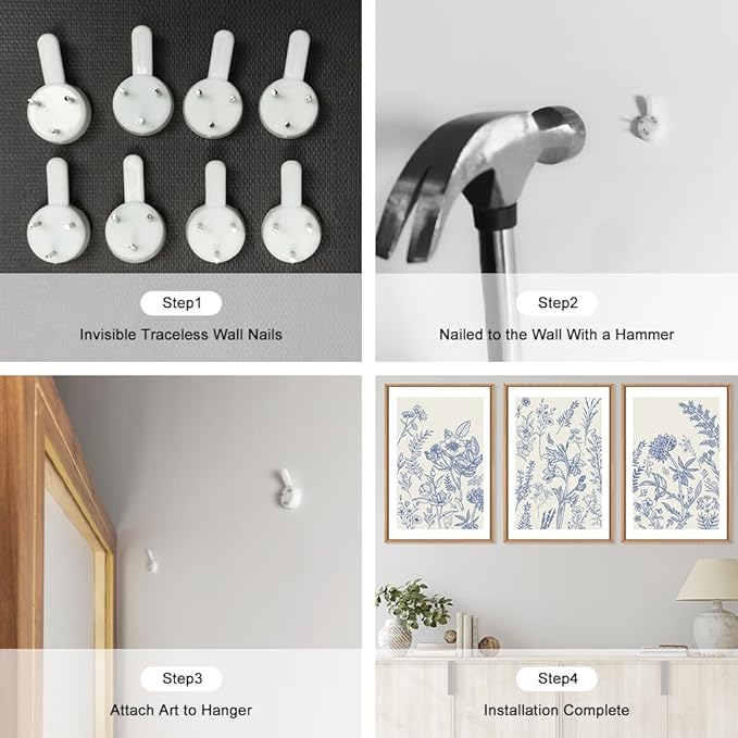 - 【Elegant Blue Botanical Wall Art】 The Size of the framed canvas wall art set is: 24x36 inchx3pcs (60x90cmx3pcs). This large set of blue botanical wall art features intricate floral details in a watercolor style, providing a serene and sophisticated visual effect that perfectly complements modern home decor.