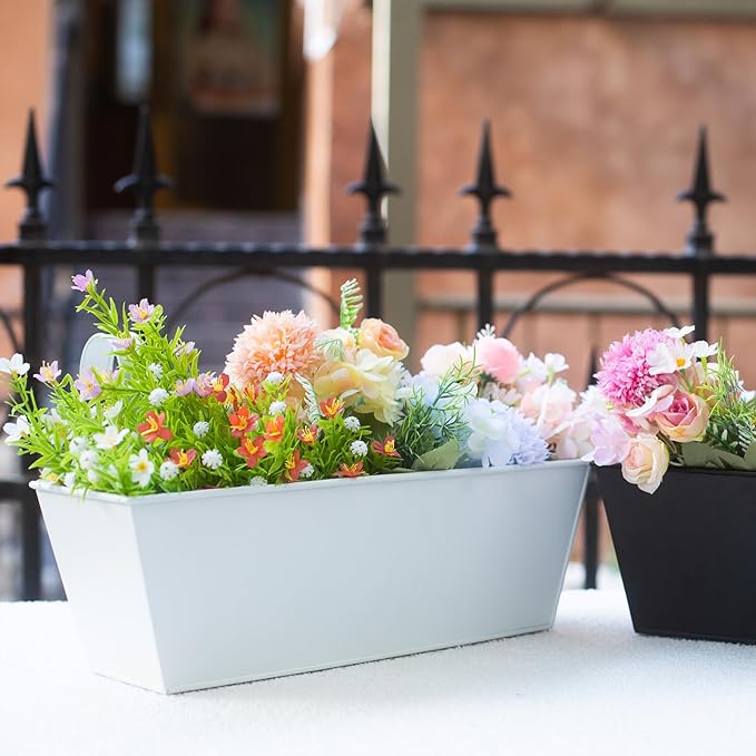 - Transform Your Outdoor Wall Decor with this sleek metal planter measuring 16x5.1x5.1 inches! Crafted from rust-resistant metal, it thrives in rain or shine, making it perfect for wall planters for outdoor plants. Dual wall mount and hook mount options let you style patios, balconies, or indoor herb gardens effortlessly.
