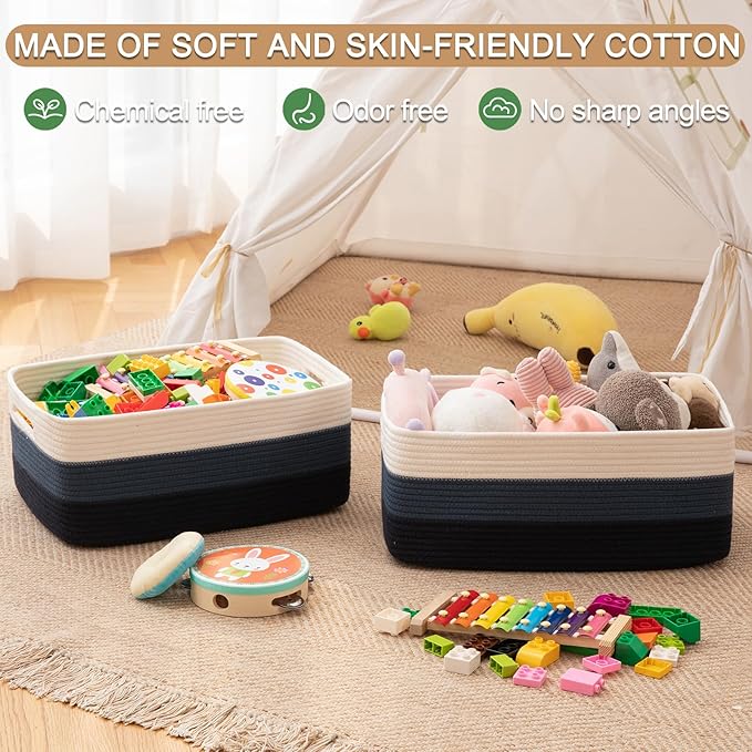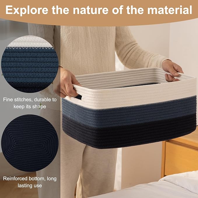 - Soft and Durable: Hand-stitched from high-quality natural cotton rope. Our baskets are very soft and baby-friendly. Seamless design, with no odor or sharp edges, not easy to tear, Great for nurseries storage and closet organization