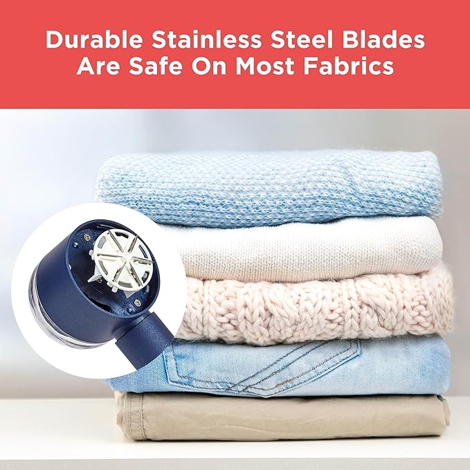 - SAFE ON MOST FABRICS – 6 durable, sharp stainless-steel blades for increased efficiency. Revives clothes, blankets, upholstery, drapery, and more, restoring a fresh, smooth look.
