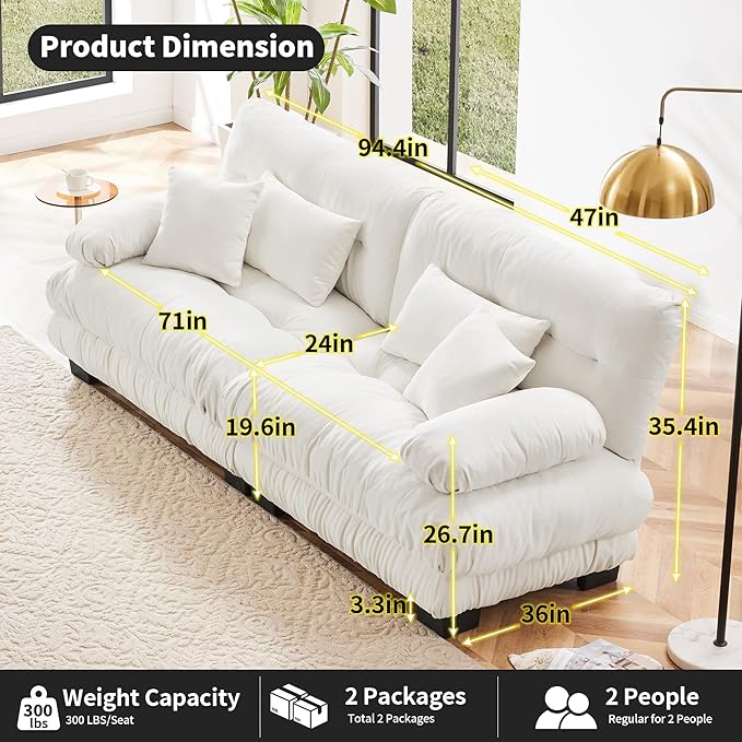 - Sitting on a Cloud: Cloud-look seat cushions without spring or wood inside offer excellent support and elasticity for your body. The deep seat offers extra support and waist comfort. Throw pillows and waist pillows provide you with extra support. You can sit down and feel the dorm couch backrest fit and support, enjoying unparalleled comfort. Whether you're watching TV, reading books, or chatting with family, this sofa will provide you with the ultimate comfortable experience