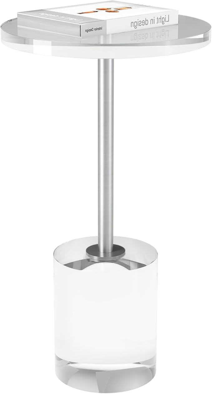 Acrylic End Table, Modern Minimalist Acrylic Side Tables, Clear Side Table for Living Room, Bedroom, Office, Drink Table (12" D x 12" W x 21" H, Silver)