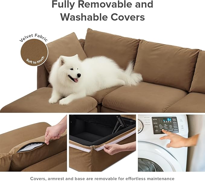 - Fully Removable & Washable Covers for Easy Care: Designed to keep up with real life, all covers, including the armrests and base, are fully removable and machine washable. Whether you’ve got kids, pets, or just the occasional spill, this sofa is easy to keep fresh and clean