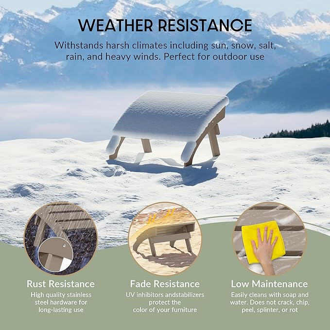 - All Weather Resistant: This Adirondack foot rest are made of HDPE plastic, its weather resistant and UV fade resistant material can withstand in various enviromental pressure and not easy to dent, crack , peel or rot as wood.