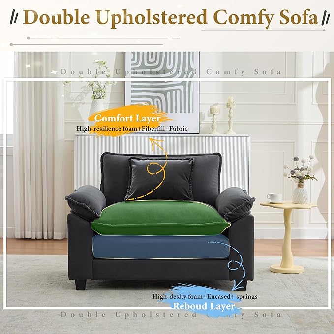 - Soft and Skin Friendly: This sofa is made of velvet fabric, which is soft and gentle to the skin.The cushions are super soft, sitting on them is like being wrapped in cotton, soft and comfortable!
