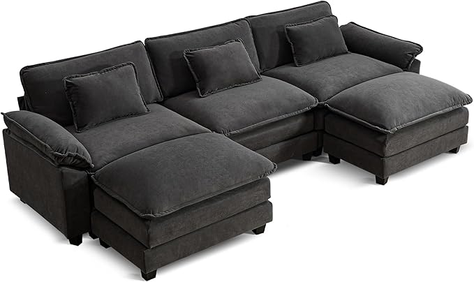 URRED Modular Sectional Sofa Comfy Cloud Couch, Modern Velvet Sofa Sleeper Deep Seat Couches with Ottoman/Pillows for Living Room (Dark Gray, 117'' - U Shape)