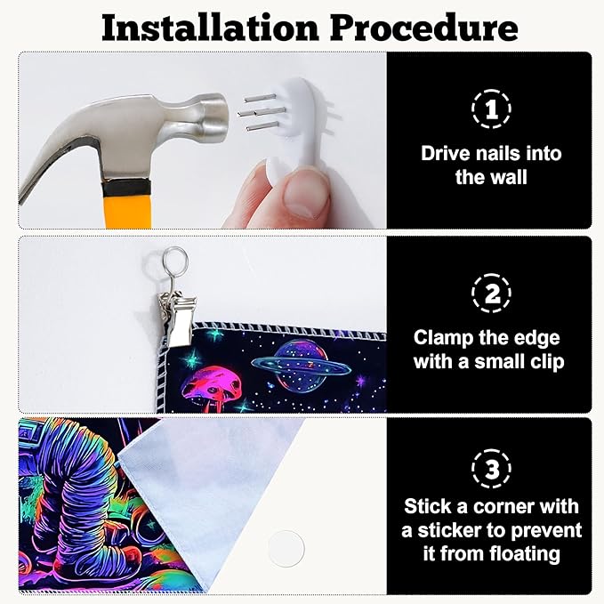 - Versatile Tapestry - With its durable materials and unique design, this blacklight tapestry can serve as a wall hanging tapestry, indie room tapestry, curtain tapestry, dorm room tapestry, ceiling tapestry, bedroom tapestry, glow-in-the-dark artwork or even a picnic blanket.