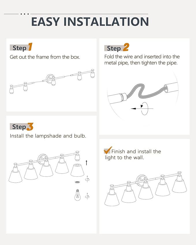 - Effortless Installation – With dimensions of 37.4” (L) × 6.5” (W) × 8.3” (H), this bathroom lighting fixture over mirror comes with all necessary mounting hardware for a smooth setup.