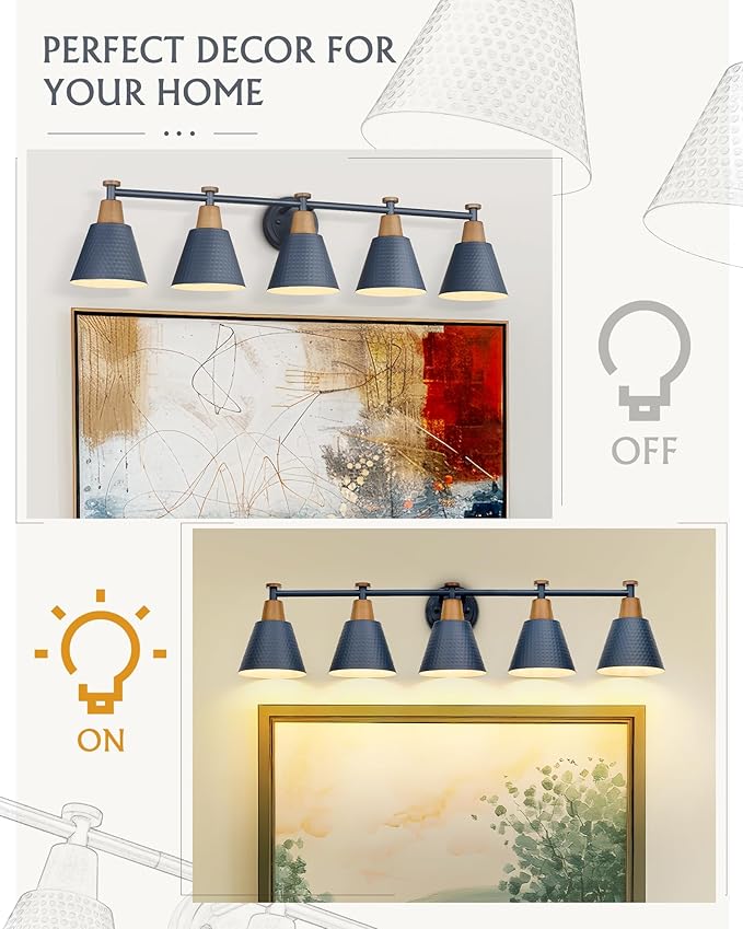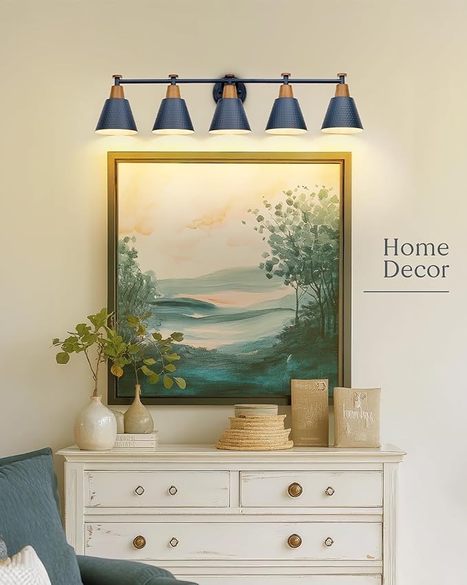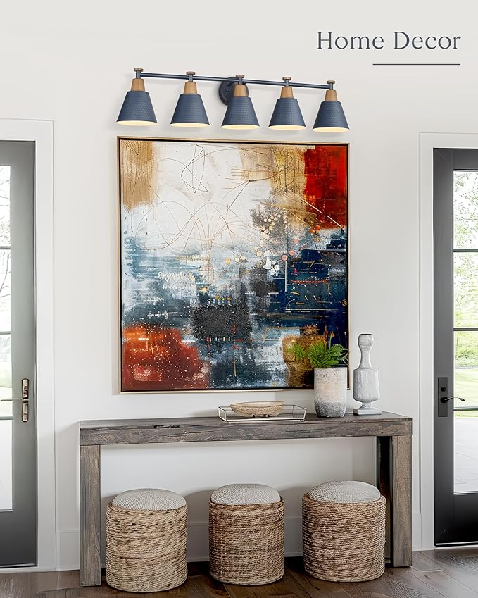 FEMILA 5 Light Bathroom Vanity Light, 37.4" Bathroom Lighting Fixtures Over Mirror, Blue Finish, E26 Base, 4FG59B-5W Blue