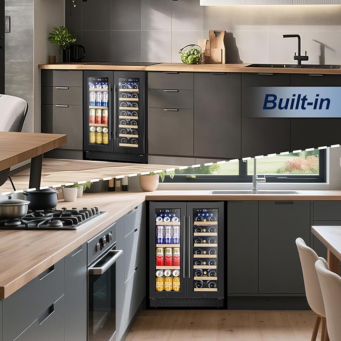 - 360° CIRCULATING AIR COOLING: The built-in wine fridge is equipped with a powerful compressor cooling system and an energy-efficient control system, delivering strong, fast, and stable cooling performance to keep your wine at a consistent temperature while quickly and steadily cooling your beverages. Additionally, it minimizes vibrations and noise, with the operating noise as low as 40 dB.
