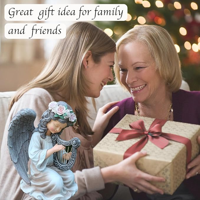 - 【Solar Angel Garden Statues】This angel garden decor is a unique design,that a girl angel with wings is playing the harp,The crafted design,colorful paint and workmanship make her very beautiful.And it makes a very peaceful and fairy feeling.Imagine how harmonious it would be to have such a lovely angel in your home.