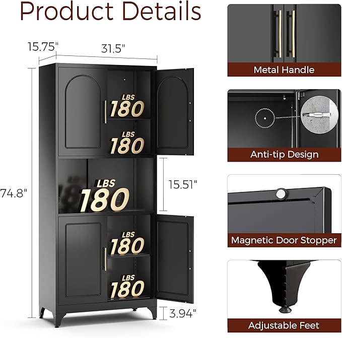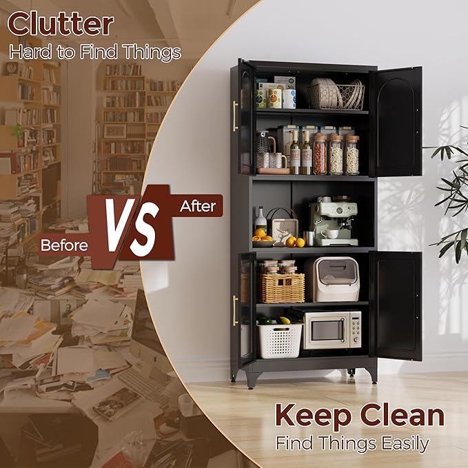 - 【Easy Assemble】Our pantry cabinets come with clear and complete parts and detailed installation instructions. One person can also assemble it quickly. Upgrade your kitchen storage with metal pantry cabinet