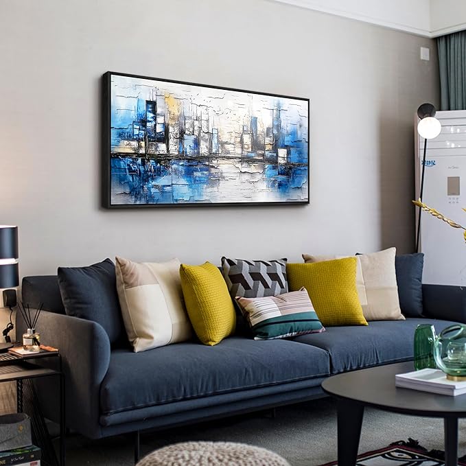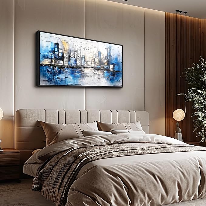 - Framed Wall Art Size: 20x40 inches (50x100 cm) Blue Abstract,Makes a great focal point for a living room, bedroom, office, or any space that needs natural beauty