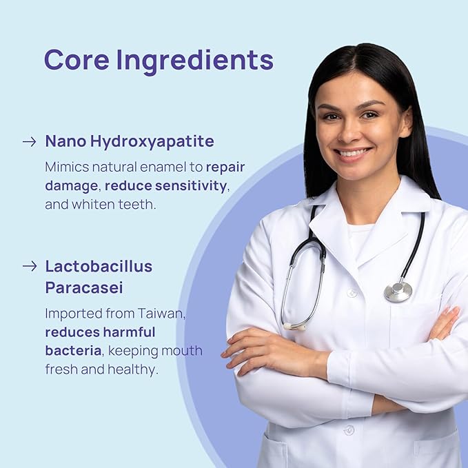 - Rejuvenate Your Smile with NHA & Probiotics: Our advanced formula blends Nano Hydroxyapatite and imported Lactobacillus probiotics to naturally remineralize teeth, brighten your smile, and support healthy gums while maintaining optimal oral flora for superior oral health.