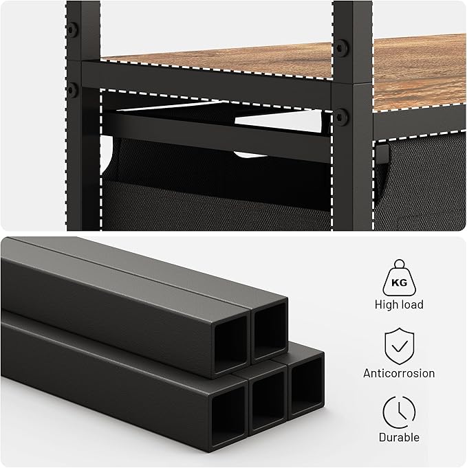 - 【Help to Assemble】To assist assembly, the 3 Tiers shelf laundry hamper with straight-forward instructions, provided tools and numbered components. About 15 minutes, the storage shelf will be a timeless piece in your laundry or living room. Considering the safety of you and your family, you can install an anti-tipping device as appropriate.