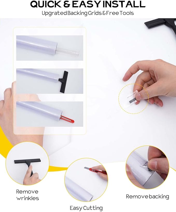 - Free Tools in Paper Tubes: You'll receive an additional opaque window film installation kit that includes a scraper, cutting knife, and watering can (note!). Some tools do not have cutting knives). If you don't find it in your night privacy window film, please contact us.