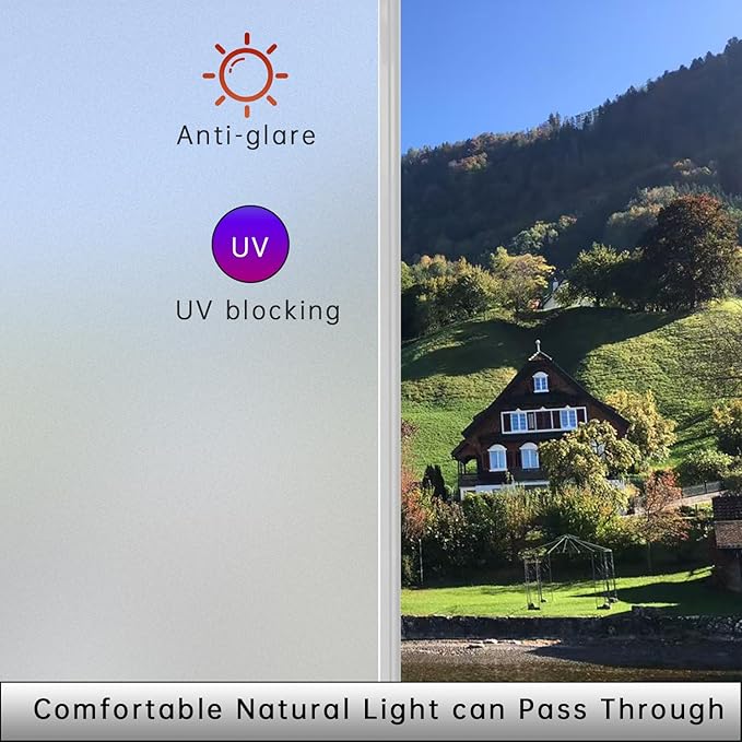 - [Window film privacy day and night]; Frosted window privacy film is used for glass windows, which can block prying eyes and dog barking, can effectively block unwanted sight from the outside, ensure that your private space is well protected, while still allowing soft natural light to enter, vinyl window film simple decoration makes life easier and better, glass doors, bathrooms, bathroom windows, home, kitchen, french doors, front door side windows, living room, meeting room, office, living room, house, patio door, bedroom, etc., window privacy screen, sliding door, Create a more comfortable living space for you and your family.