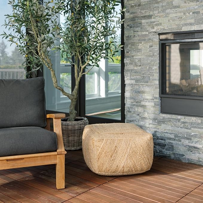 - PREMIUM HOME DECOR: Elevate your home with our braided jute ottoman pouf. Designed to harmonize with CG Hunter’s faux plants and trees, our jute ottoman creates a layered, nature-inspired look, enhancing your space with texture and visual depth.