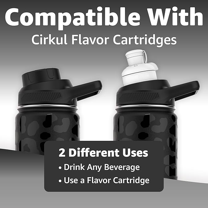 Chill Oasis Water Bottle | Compatible With Popular Flavor Cartridges | BPA Free, Leak Proof, Double-Walled Vacuum Insulated Stainless Steel, and Dishwasher Safe | Cold for 24 Hours (Leopard, 12oz)