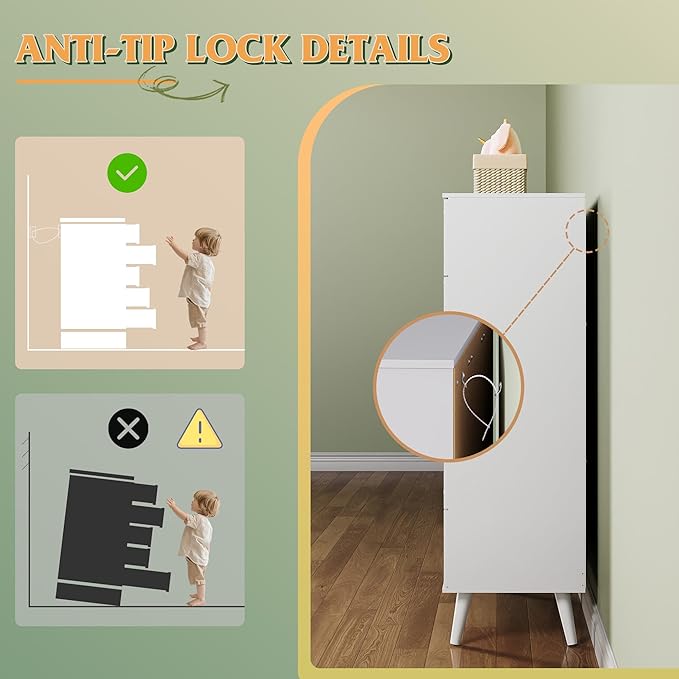 - â¨ăStructure Stable and SmoothăThe dresser drawer features a middle support plate for stability and stronger load capacity, smooth metal slides for easy pulling, which allows drawers to open fully without tipping for better storage.