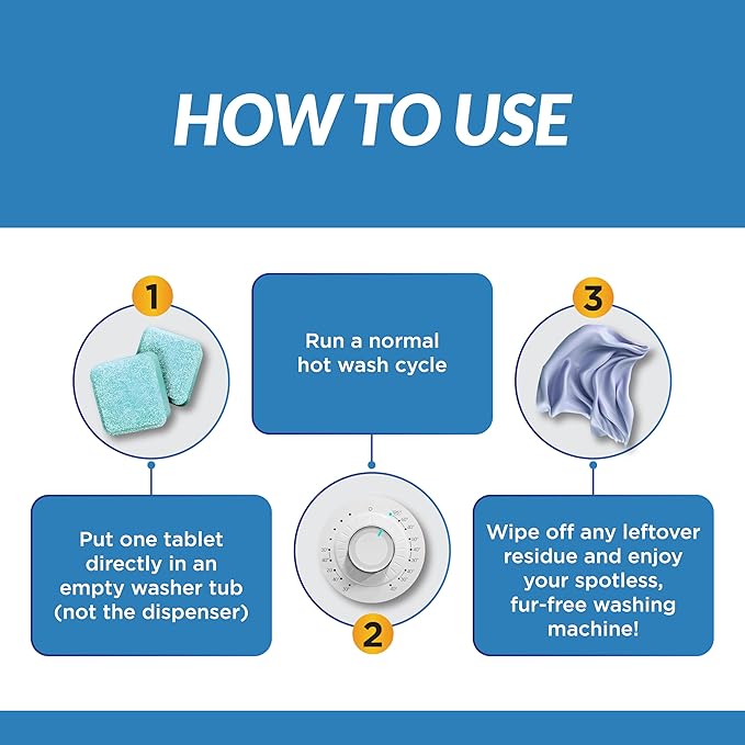 - Easy to Use & Universal Fit – Just drop one tablet into the empty drum and run a hot cycle. Compatible with all major washing machine brands.