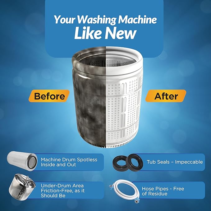 - Powerful Deep Cleaning Formula – Penetrates and dissolves stubborn grime, detergent build-up, and hard water residue in HE, front and top load washers.