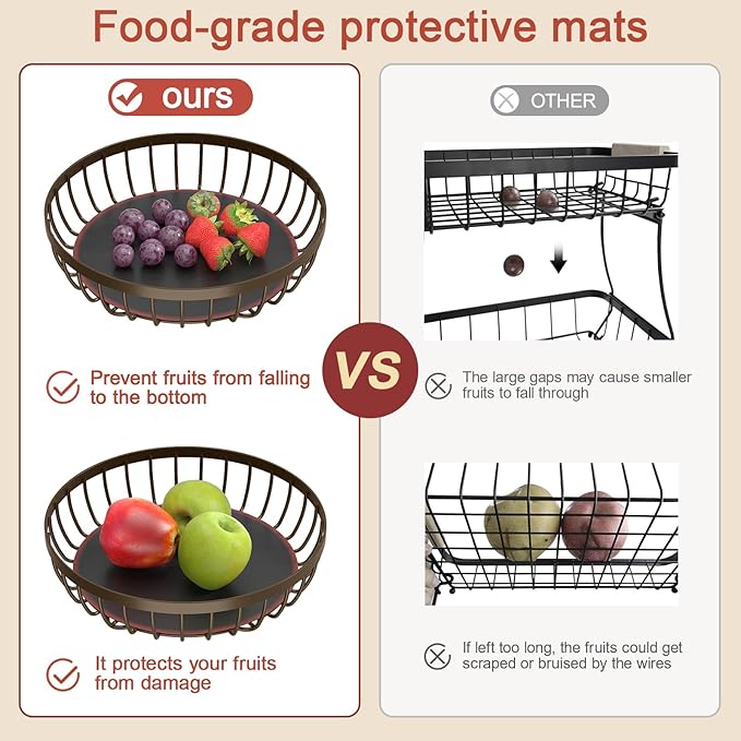 - Protects Fruit: Features a food-grade protective liner to prevent small fruits from falling and avoid pressure marks. Perfect fruit holder.