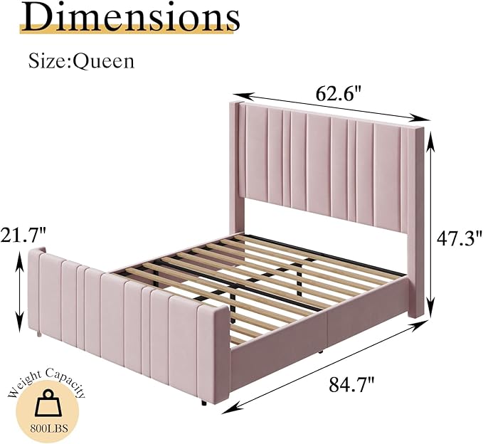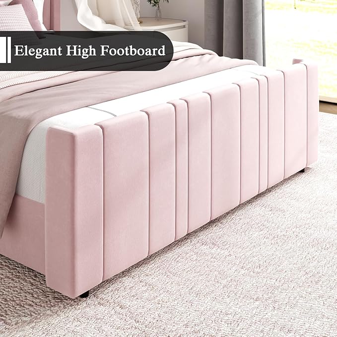 - Sturdy: With the solid construction, the pink queen bed frame enhances safety and comfort. The upholstered headboard provides excellent support for relaxing and sleeping. Kids and pets friendly, beautiful and soft to the touch