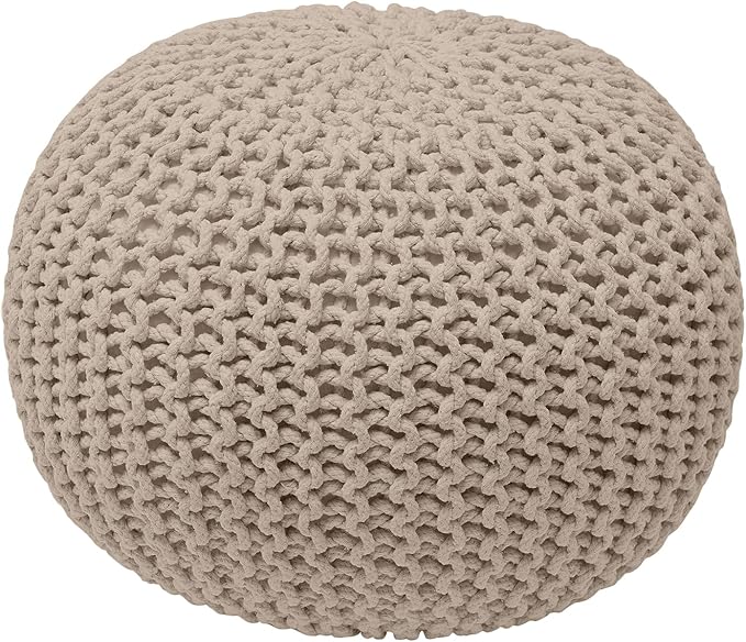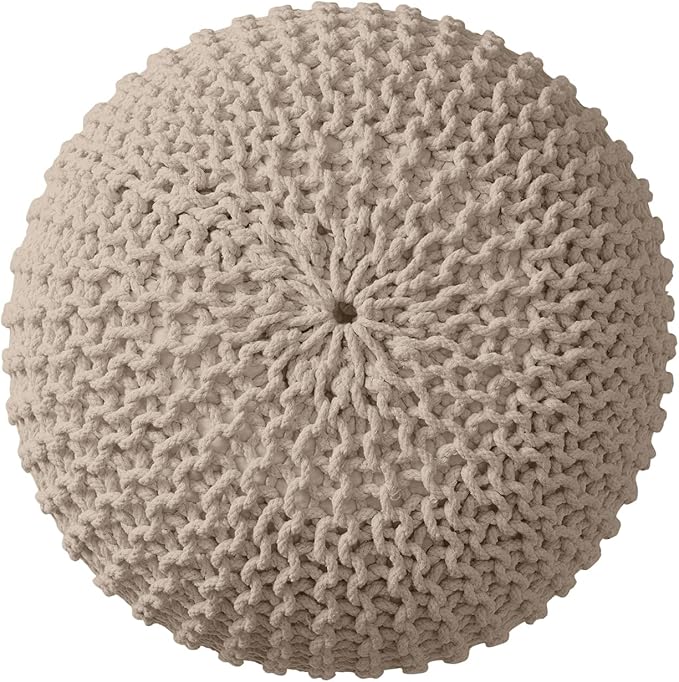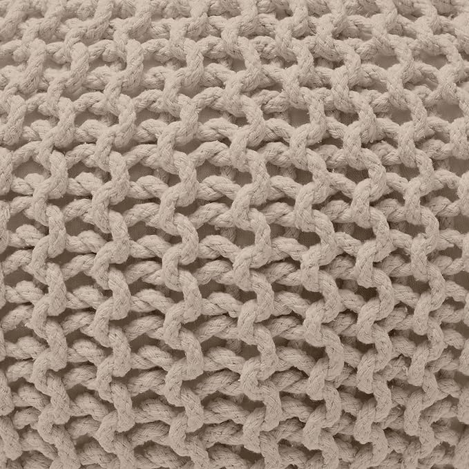 Ornavo Home Pouf Ottoman Foot Rest - 100% Cotton Pouffe - Hand Knitted Cable Braid Cord - Boho Round Stuffed Ottoman for Living Room, Bedroom - Beige