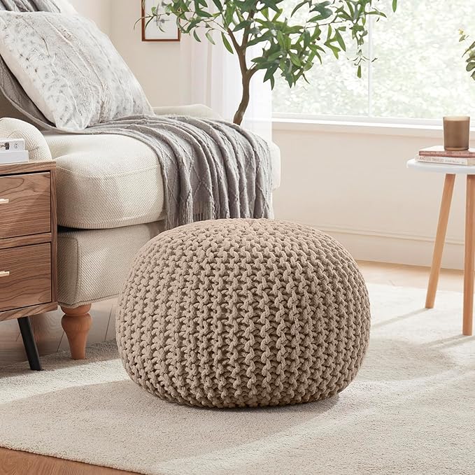 - HANDMADE CRAFTSMANSHIP: Each pouf ottoman is meticulously hand-knitted by skilled artisans. This attention to detail ensures not only a unique and high-quality piece but also adds a touch of artisanal charm to your home decor that promises to be the center of conversation and admiration.