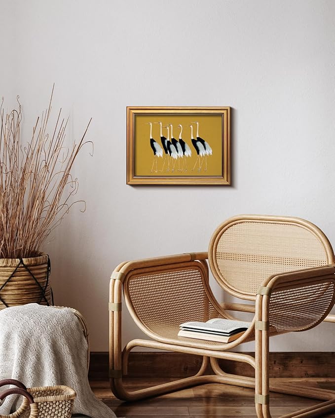 HUARCEY Gold Framed Vintage Wall Art for Living Room, Animals Painting Prints Shelf Decor for Kitchen, Aesthetic Bedroom Wall Art Decor, Christmas Gifts for Friends or Family (Seven Cranes 12"x16")