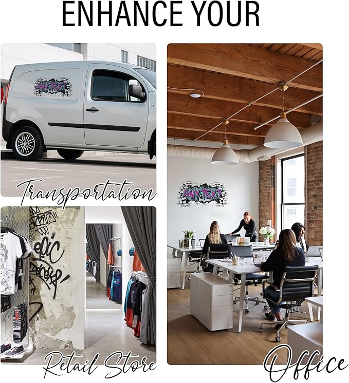 - DURABLE, WEATHER-RESISTANT DECALS: Our fade-resistant, weatherproof wall vinyl decals are perfect for both home offices and businesses, whether used indoors or outdoors. They remain vibrant over time, thus making them ideal to be used as a business logo that retains their original look even after repeated cleanings.