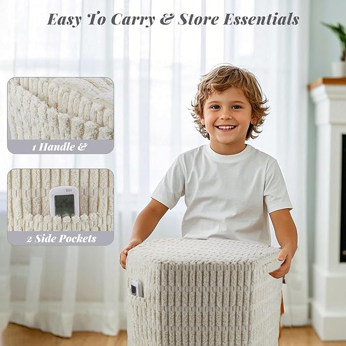- No Assembly & Quick Fluffy: Our poofy ottoman is vacuum packed without assembly, just open the vacuum-sealed bag and watch it fluff up fast! The poufs for living room corduroy cover is removable and easy to clean—machine wash on gentle mode or rinse by hand