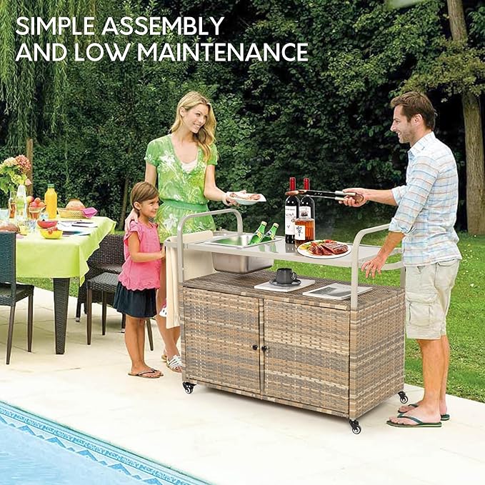 - LOW MAINTENANCE: Assembling this outdoor storage cart is quick and straightforward with minimal tools required. Once assembled, maintaining the cart is easy—simply wipe down the wicker surface and remove the ice bucket for cleaning