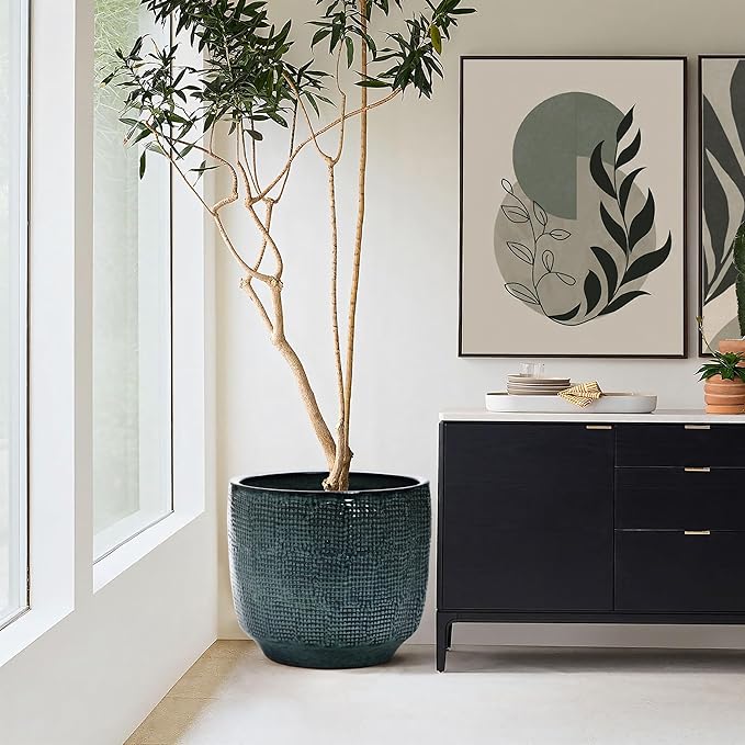 - Lustrous Surface: The glaze finish of ceramic outdoor planter pot has unique grid texture that is very distinctive, and its elegant colors better accentuate the showiness of plants and flowers. The smooth surface reflects light beautifully, enhancing your space with a touch of refined artistry.