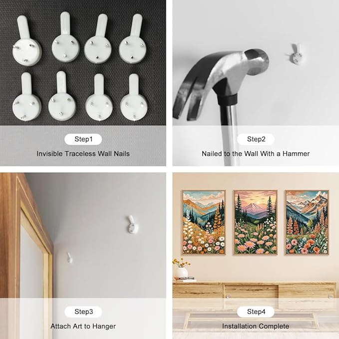 - 【Easy To Hang】The abstract natural landscape framed picture set is easy to hang, ready to hang, it is finished with metal hooks and non-trace nails. It will only take about 5 minutes for you to hang it up.