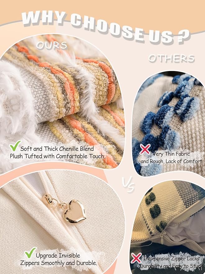- PREMIUM QUALITY FABRIC: Made from a high-quality chenille and woven polyester blend, the throw pillow covers are ultra-soft and durable. The tufted design adds texture and dimension, creating a luxurious and inviting atmosphere.