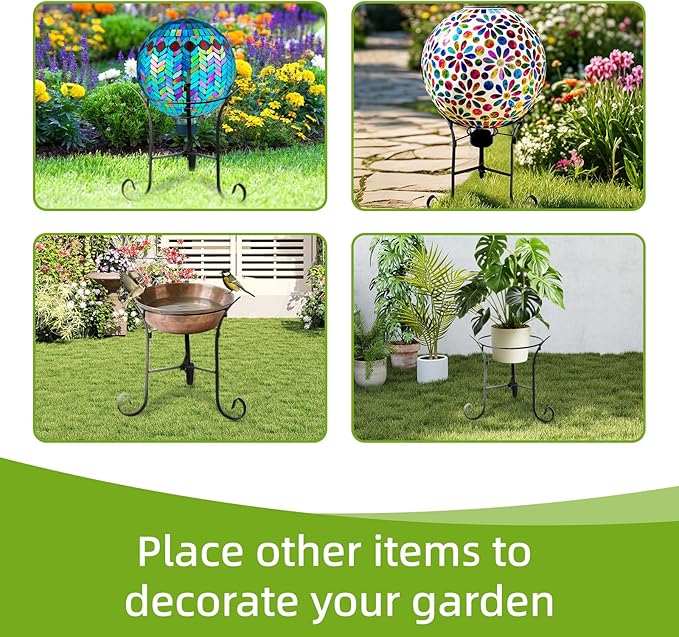 - Perfect gift: Our gazing balls stand is an ideal choice for birthdays or other special holiday gifts for family and friends. Use this metal bracket to appreciate the beauty of your gazing ball and create an eye-catching decorative effect. (Gazing ball sold separately)