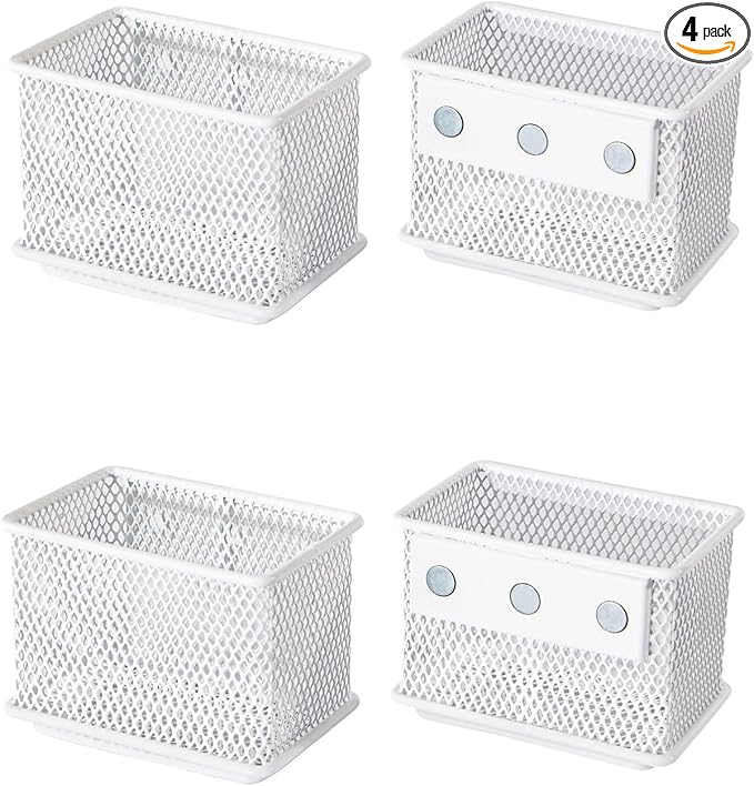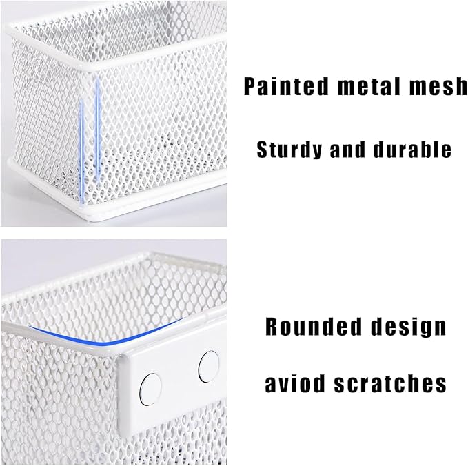White Magnetic Basket, Magnetic Pencil Holder for whiteboard, Wire Mesh Magnetic Refrigerate Organizer, Magnetic shelf Desktop Storage, 3.42'' x 2.36'' x 2.55'',Set of 4