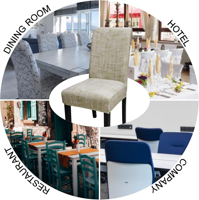 - 【High Quality of Chair Cover】- JQinHome dining room chair covers are made of durable and high persistence polyester and stretchy spandex fabric, soft, comfortable and wrinkle resistant, no ironing required; Stretchable Material,stretch that recovers quickly,secure fit with sewn-in elastic hem.