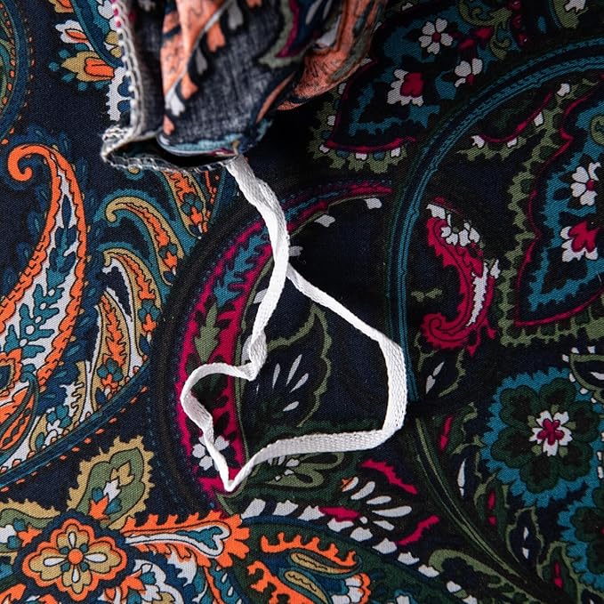 ABREEZE Luxury Vintage Black Duvet Cover Sets Damask Paisley Bedding Set Retro 100% Brushed Cotton Zipper Closure Bedding Collection Queen Size