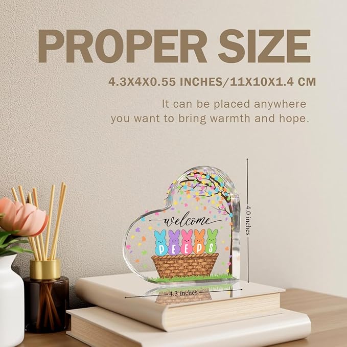 Funny Easter Bunny Decor Desk Decor Acrylic Heart Sign Easter Decorations Easter Gift Acrylic Heart Plaque Box Sign for Home Farmhouse Kitchen Bathroom Shelf Table Decoration
