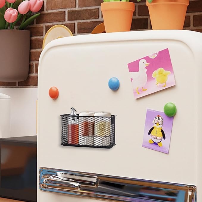 Wire Mesh Storage Baskets Organizer Black Magnetic Basket with 5 Strong Magnets, Magnetic Organizer Holder for Refrigerator Locker Whiteboard Office,Home 6.29'' × 2.28'' × 3.54'',4 Pack