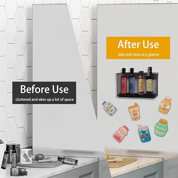 - Save Space: The size of magnetic spice rack for refrigerator is 6.1'' × 2.2'' × 3.5'', not occupying too much space. It can well organize pens, pencils, markers, keys, notes, keeping your locker and desk tidy