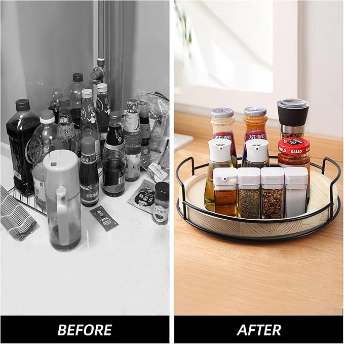 - This wooden turntable cabinet turntable saves space and optimizes space utilization, keeping your kitchen or pantry neat and organized