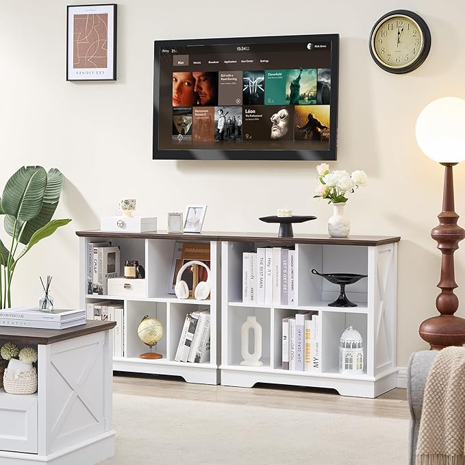 - 5 Cube Storage Space: Our farmhouse-style cube storage bookcase features six spacious compartments, perfect for organizing books, decor, baskets, and more. The rustic X-pattern side panels add a charming touch, seamlessly blending with our existing furniture collection to create a cohesive home decor set. Ideal for living rooms, bedrooms, offices, or closets, this bookcase combines functionality with timeless design