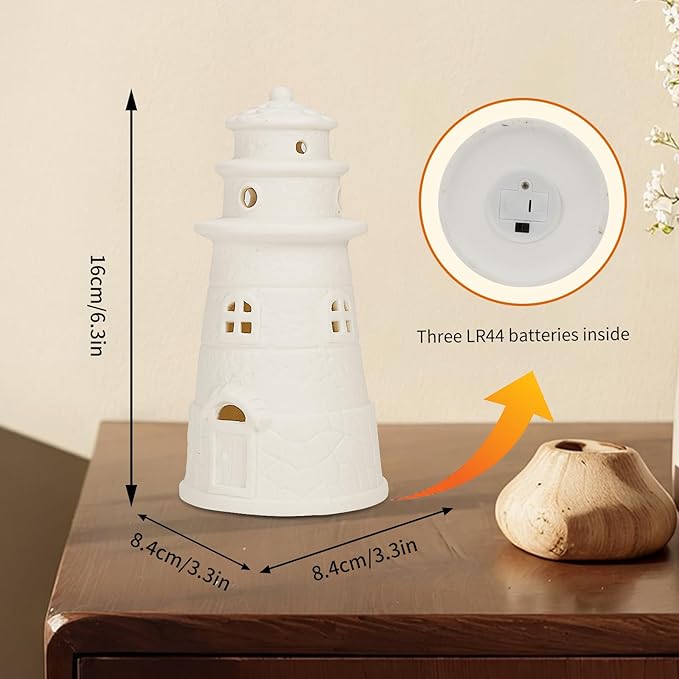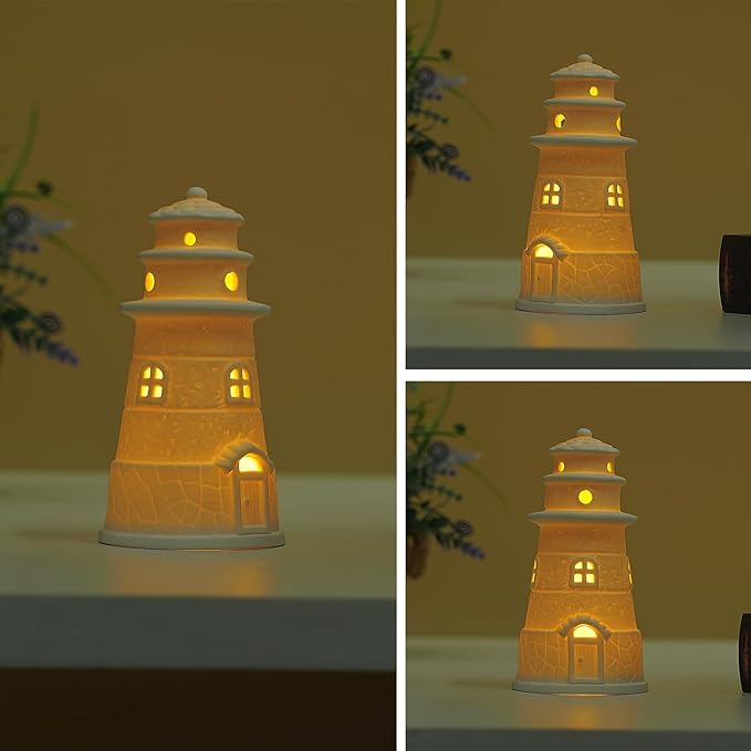 - Glowing Lighthouse Decor:Crafted from premium high-fired ceramic clay, the ROSYCOUD Lighthouse showcases raw, unglazed textures that highlight its intricate artisan details. Seamlessly integrated LED warm-white lighting emits a soothing glow, perfect as a comforting nightlight or for creating a cozy ambiance in any room