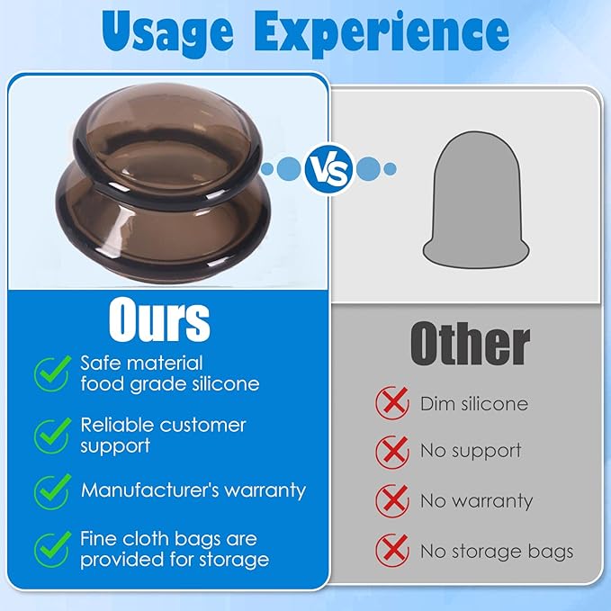 - Classic Cupping Therapy No Side Effect: 5 minutes of cupping therapy is equivalent to half an hour of deep massage. Good for improving blood circulation and detoxify the body.