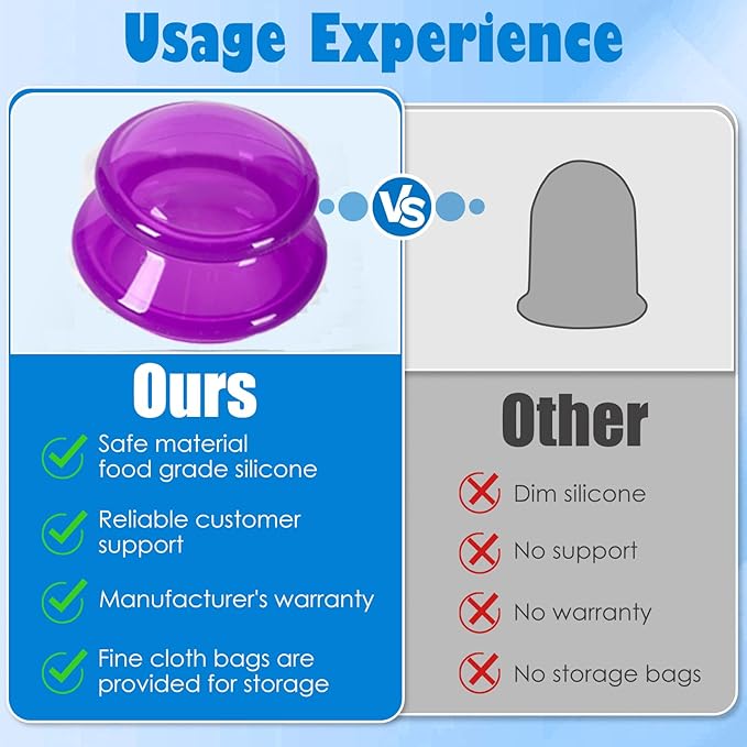 - Classic Cupping Therapy No Side Effect: 5 minutes of cupping therapy is equivalent to half an hour of deep massage. Good for improving blood circulation and detoxify the body.