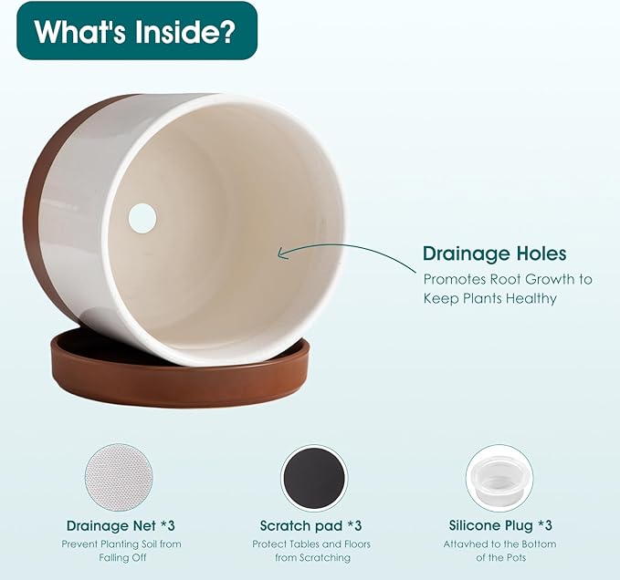 - 【Stylish & Easy to Clean 】Crafted from premium natural ceramic clay and high-fired for exceptional strength, these planters for indoor plants, resist cracking, peeling, and color fading. Easy-clean surfaces simplify maintenance. they blend timeless elegance with rugged durability, making them a practical yet sophisticated upgrade for any space—and a thoughtful gift for plant lovers seeking lasting quality.